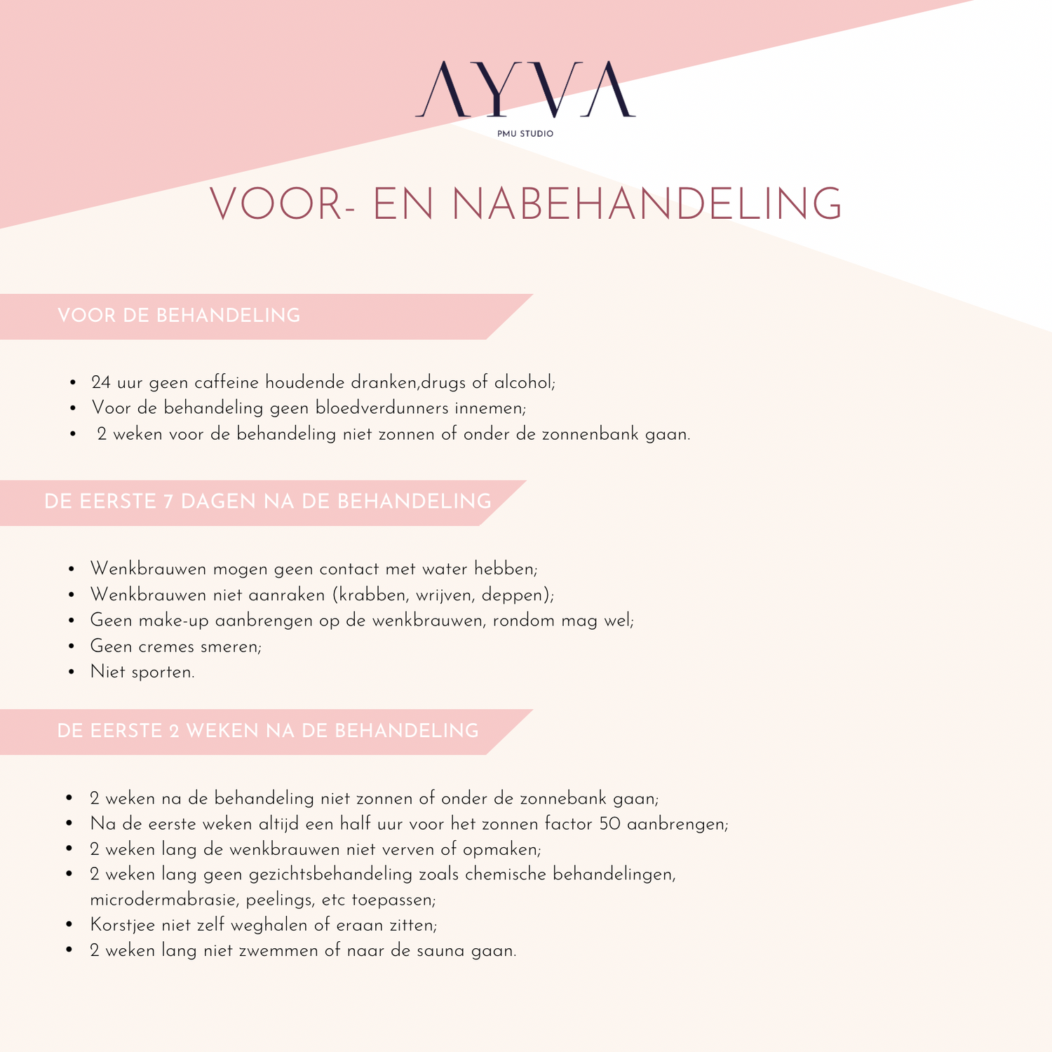 *Er wordt voor alle behandelingen een voorschot gevraagd bij het maken van de afspraak. Dit om no-shows te voorkomen. Dit voorschot is non-refundable. Wij hopen op je begrip!